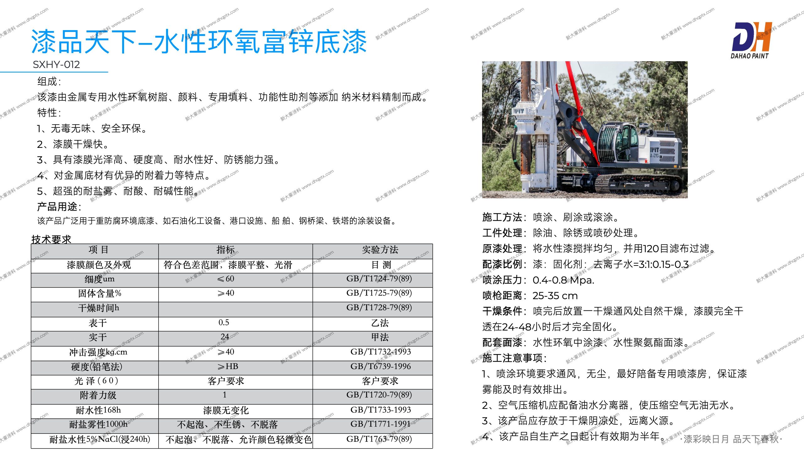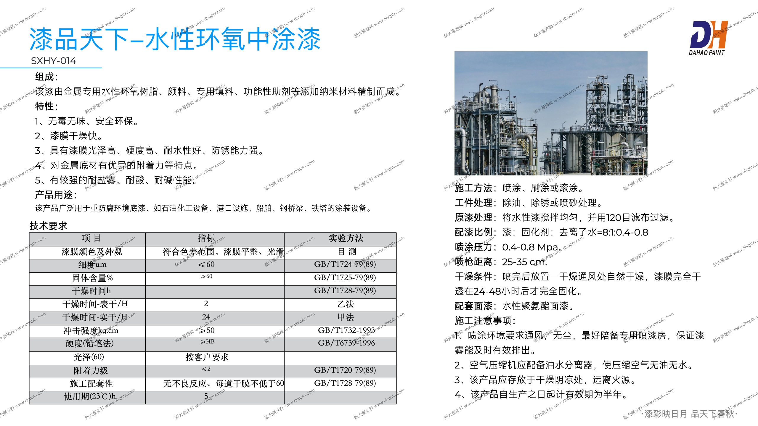 成都新大豪涂料有限公司源于2006年,是一家专业从事工业防护装饰涂料、汽车机车涂料、建筑及工程机械涂料、炼油化工行业涂料、火电风电涂料、船舶集装箱涂料、地坪及水处理涂料、木器涂料等开发研究、生产、销售、技术咨询于一体的技术先进科技型高新技术企业。